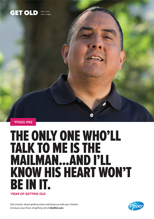 In 2014, Pfizer re-launched Get Old, our multi-year reputation initiative, with a renewed focus on challenging people to face their #FOGO, or Fear Of Getting Old. This next evolution of Get Old tackles these fears head-on by bringing wit and wisdom to aging, and features new engaging content to provide insights and advice aimed at helping users to lead healthier, longer lives. The effort has led to more than 1.4 million people visiting GetOld.com, and a social media community of nearly 180,000 people.