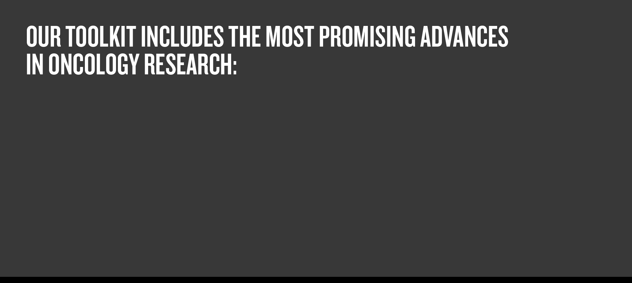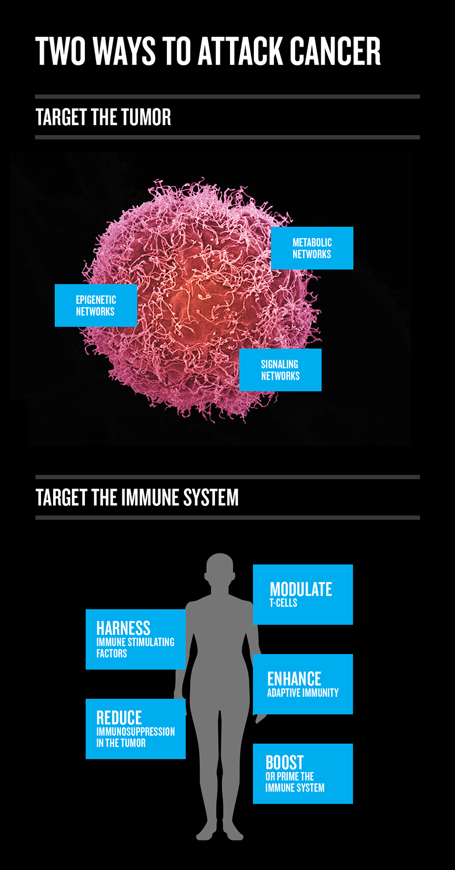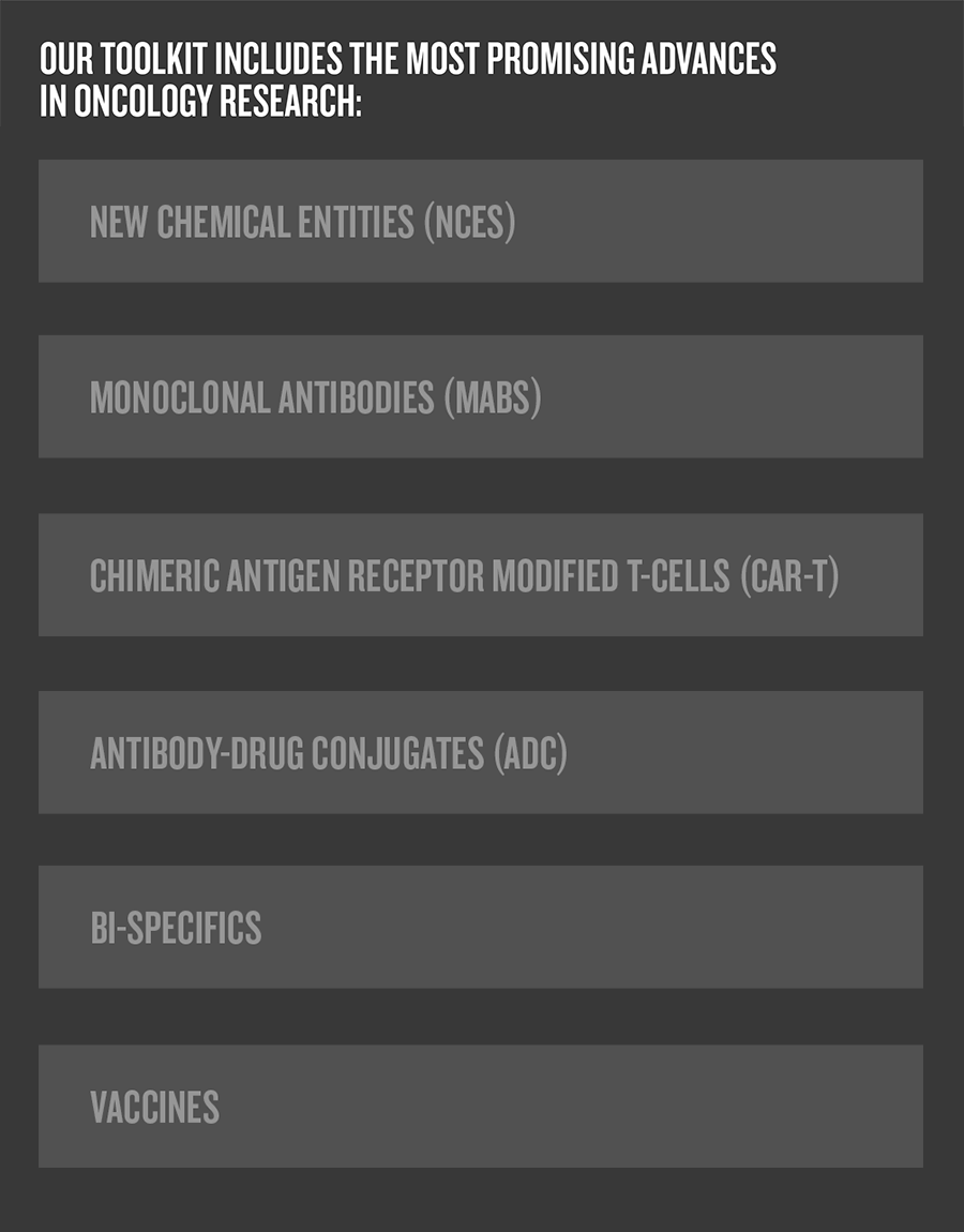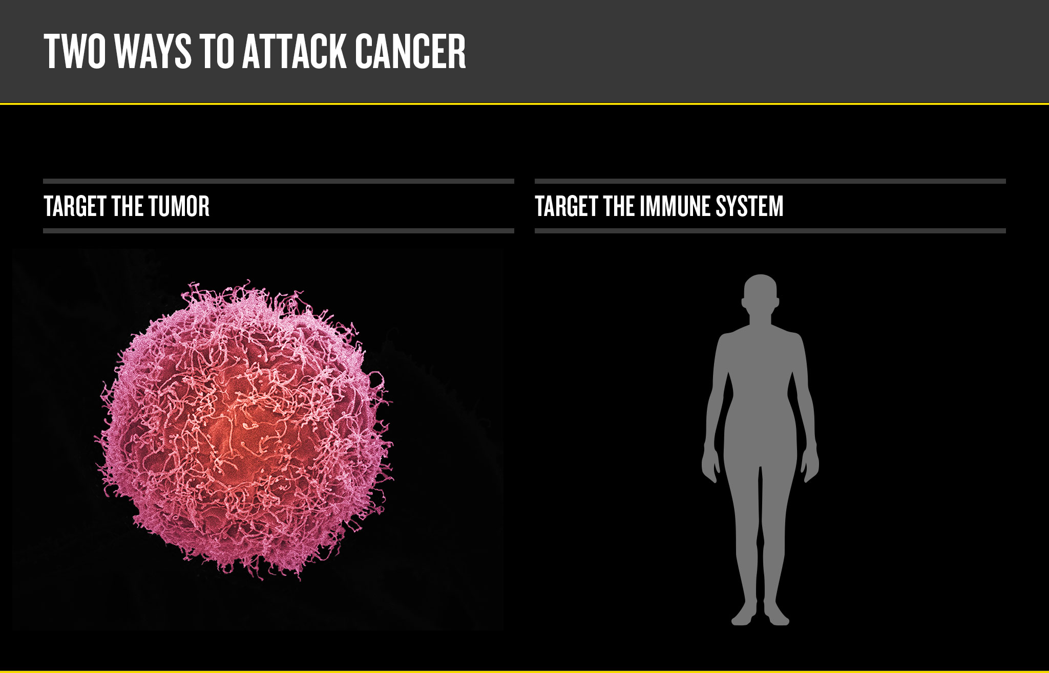 Today we have eight approved cancer medicines, four of them launched in the last four years. Our large and growing investigational portfolio takes a multi-pronged attack on cancer, including drug candidates designed to kill tumor cells and immunotherapies designed to stimulate the immune system to mount a stronger defense against cancer. Research continues.