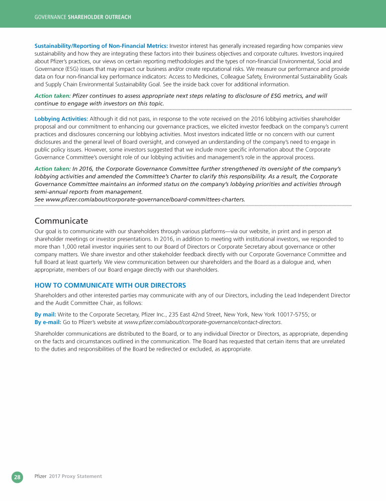 A Message from Pfizer's Lead Independent Director