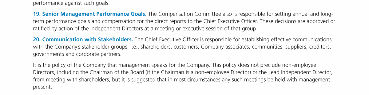 Other Governance Practices and Policies